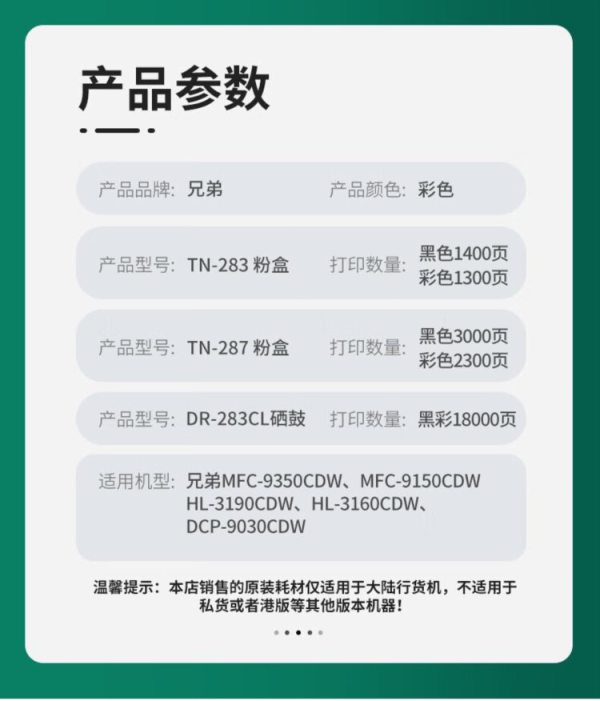 商品名称:兄弟(brother) TN-283C 1300页 适合HL-3160 3190DCP-9030MFC-9150 9350CDW 墨盒 蓝色 (计价单位:盒)