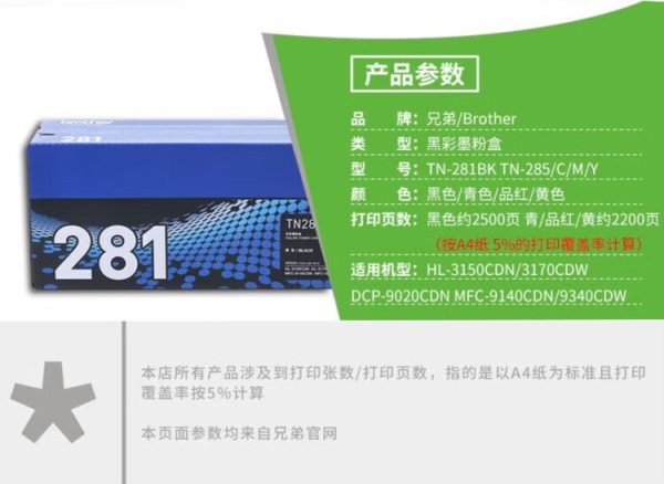 兄弟(brother) TN-285Y 2200页 适用HL-3150CDN 3170CDW DCP-9020CDN MFC-9140CDN 9340CDW 墨盒 黄色 (计价单位:盒)