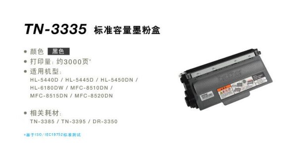 商品名称:兄弟(brother) TN-3335 3000页 适用:HL-5440D/5445D/5450DN/6180DW/MFC-8510DN/8515DN/8520DN 墨盒 黑色 (计价单位:盒)