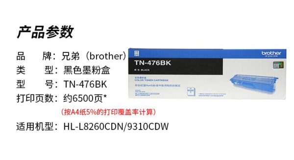 商品名称:兄弟(brother) TN-476BK 6500页 适用HL-L8260CDN/9310/8900CDW 墨盒 黑色 (计价单位:盒)