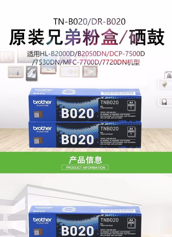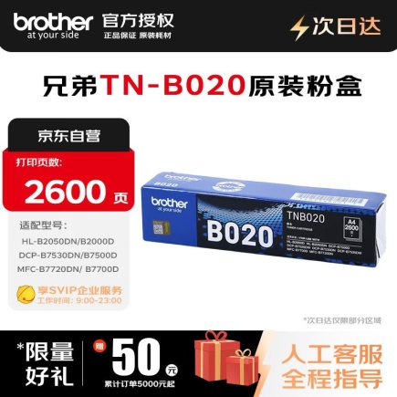 兄弟(brother) TN-B020 2600页 用兄弟 7720DN;7700D;7530DN;7500D;2050DN;2000D 墨盒 黑色 (计价单位:盒)