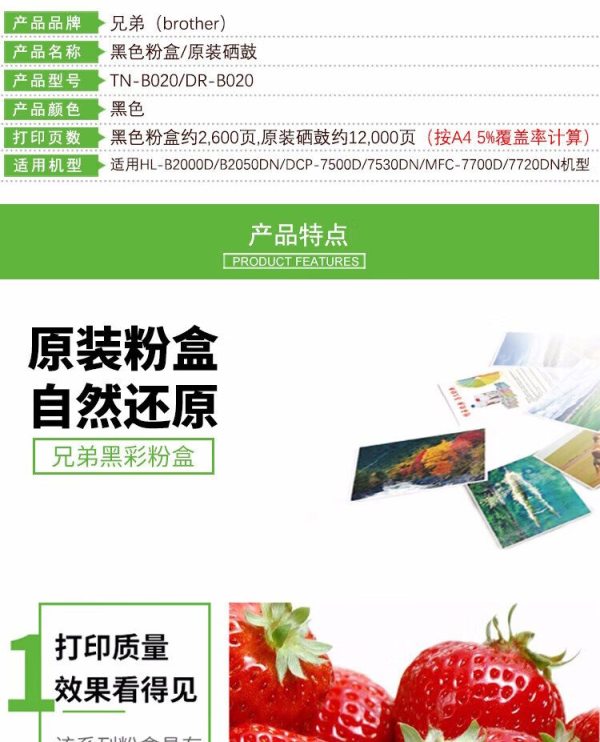 商品名称:兄弟(brother) TN-B020 2600页 用兄弟 7720DN;7700D;7530DN;7500D;2050DN;2000D 墨盒 黑色 (计价单位:盒)