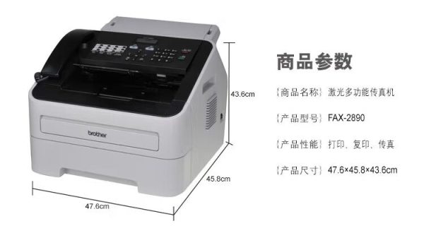 商品名称:兄弟(brother) FAX-2890 476x458x436mm 传真机 黑白色 (计价单位:台)