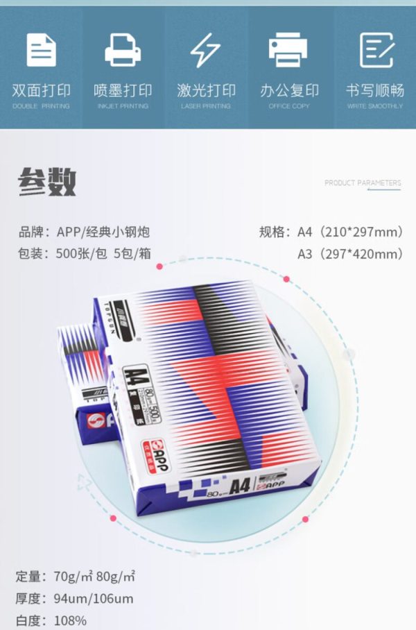 商品名称:小钢炮 经典 A3/80g 500张/包(5包/箱) 复印纸 (计价单位:箱)