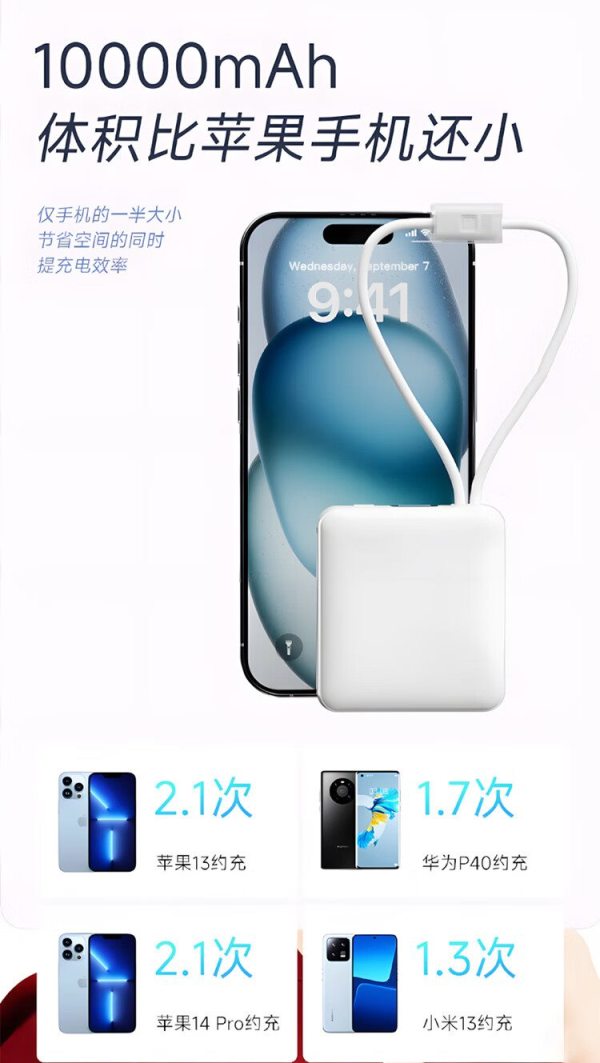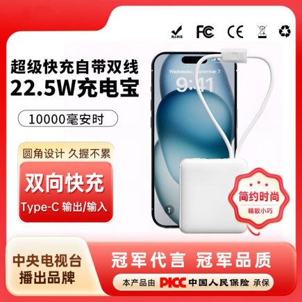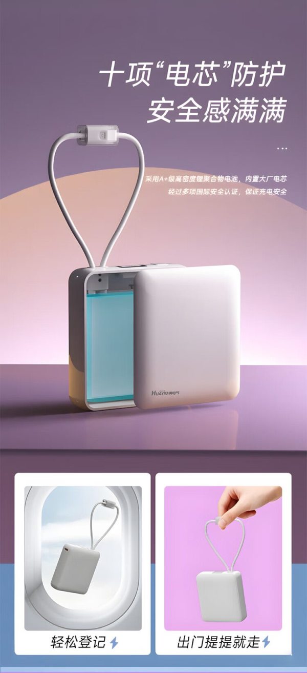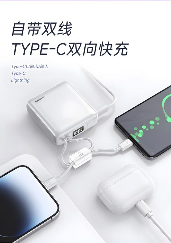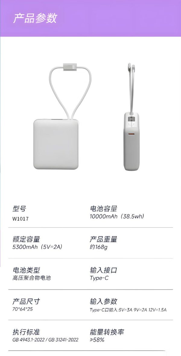 商品名称:华翼电气 W1017 小方糖10000毫安时超级快充自带双线22.5W充电宝 (单位:个)