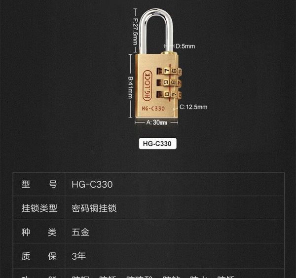 商品名称:HG LOCK HG-C330 30*12.5*68.5mm 锁 (计价单位:套)