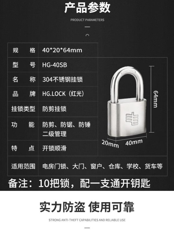 商品名称:HG LOCK HG-40SB 304不锈钢 挂锁 (计价单位:套)