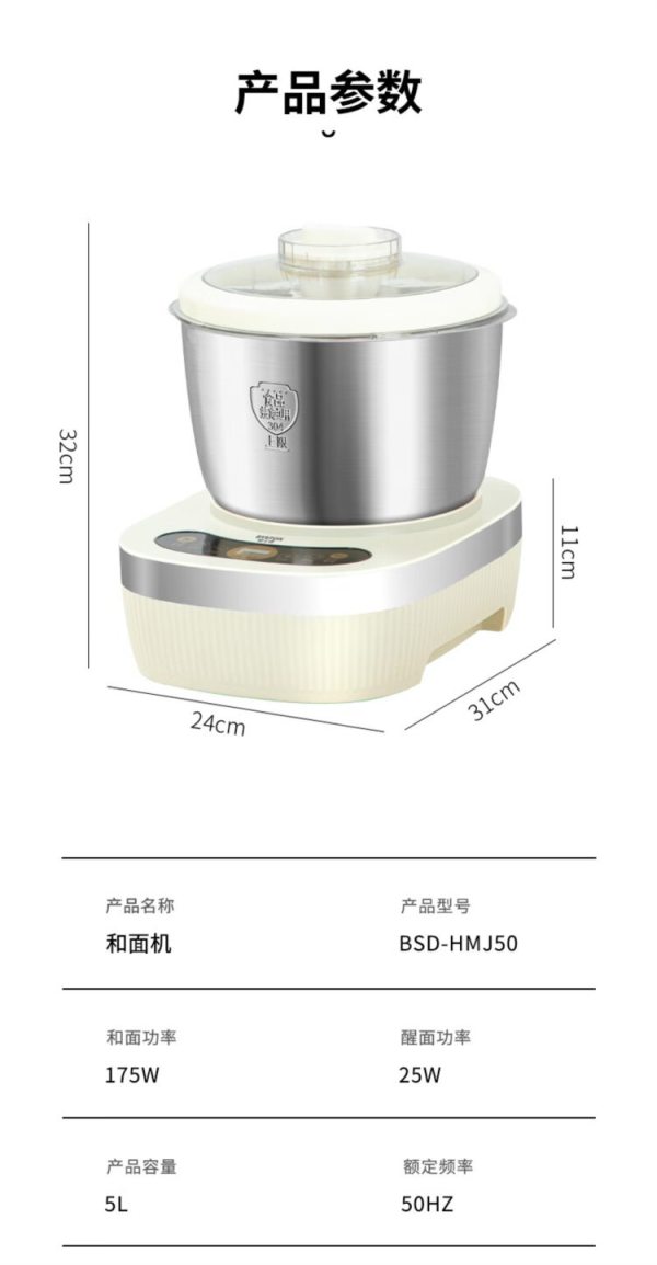 商品名称:栢士德(BYSTON) BSD-HMJ50 多功能和面机 5.0L (计价单位:台)