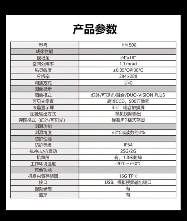 商品名称:飒特红外 HM500 红外热成像仪 384机芯 单位:套