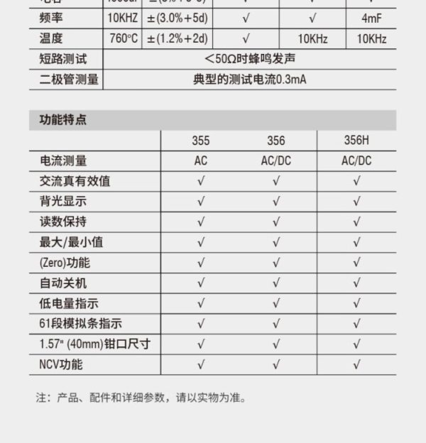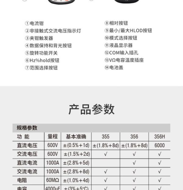 商品名称:华盛昌 NH-356H 600V/1000A 钳形表 (计价单位: 台 )