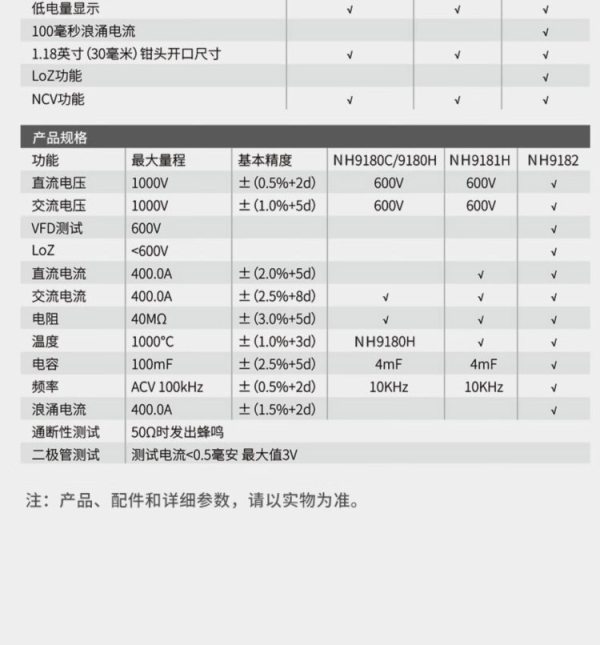商品名称:华盛昌 NH-9182 1000V/400A 钳形表 (计价单位: 台 )