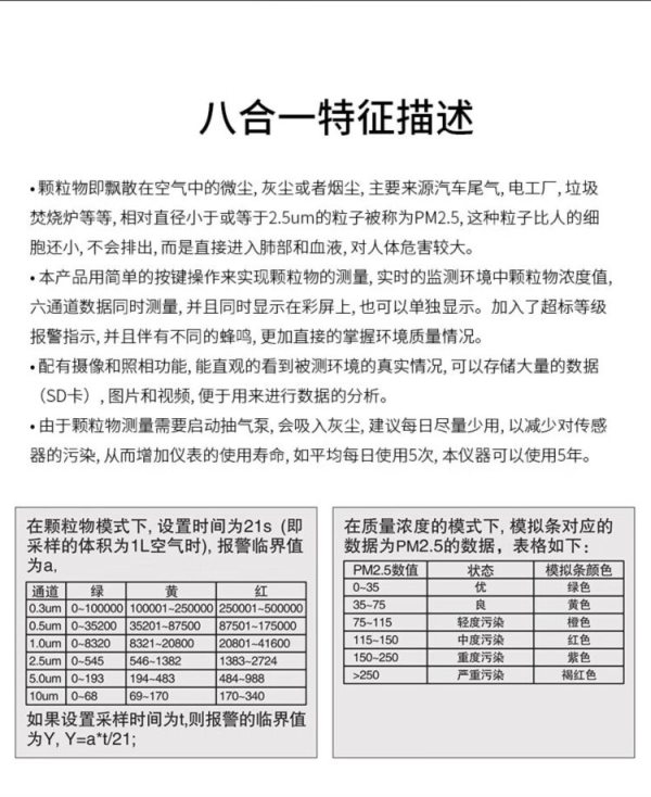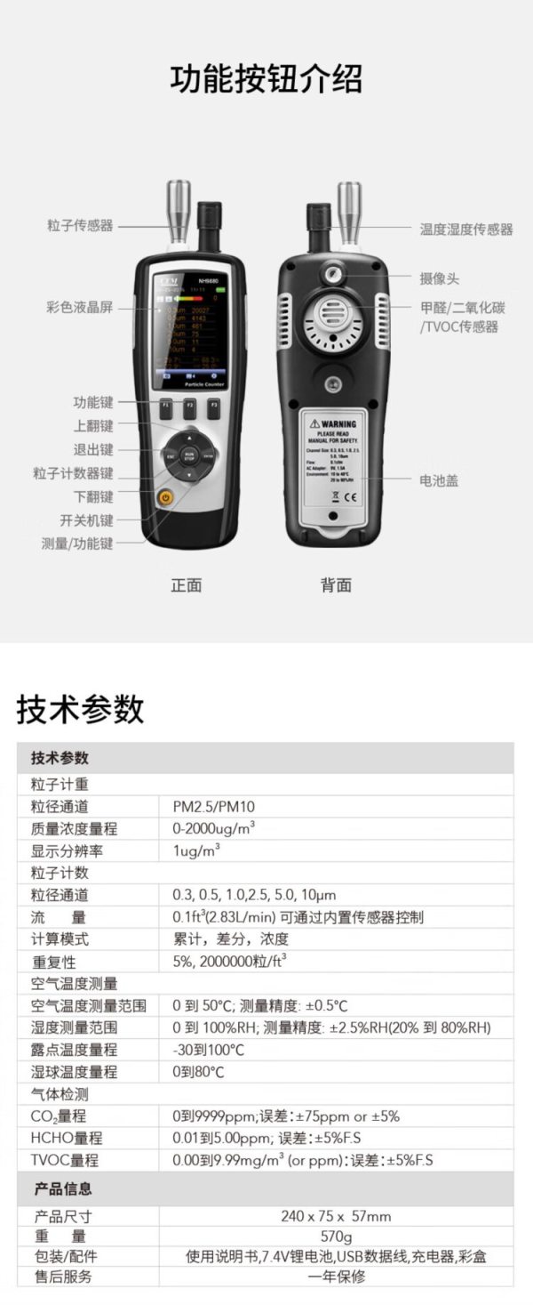 商品名称:华盛昌 NH9880 六通道粒子检测 PM2.5/PM10 空气粒子计数器 (计价单位: 台 )