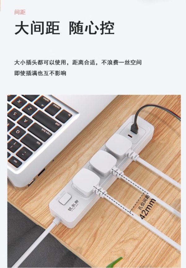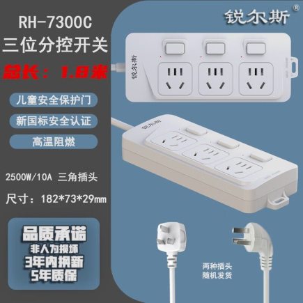 商品名称:锐尔斯 RH-7300C 三位分控开关延长线插座全长1.8米 瓷白色(计价单位:个)