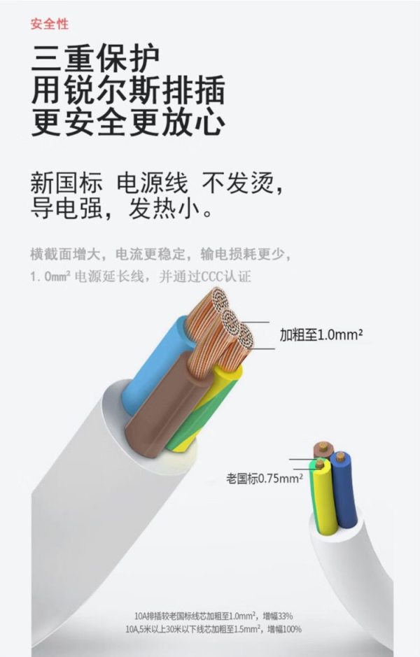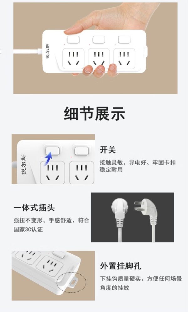 商品名称:锐尔斯 RH-7400C 四位分控开关延长线插座全长3.0米 瓷白色(计价单位:个)