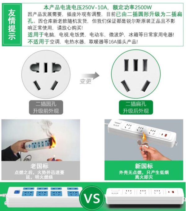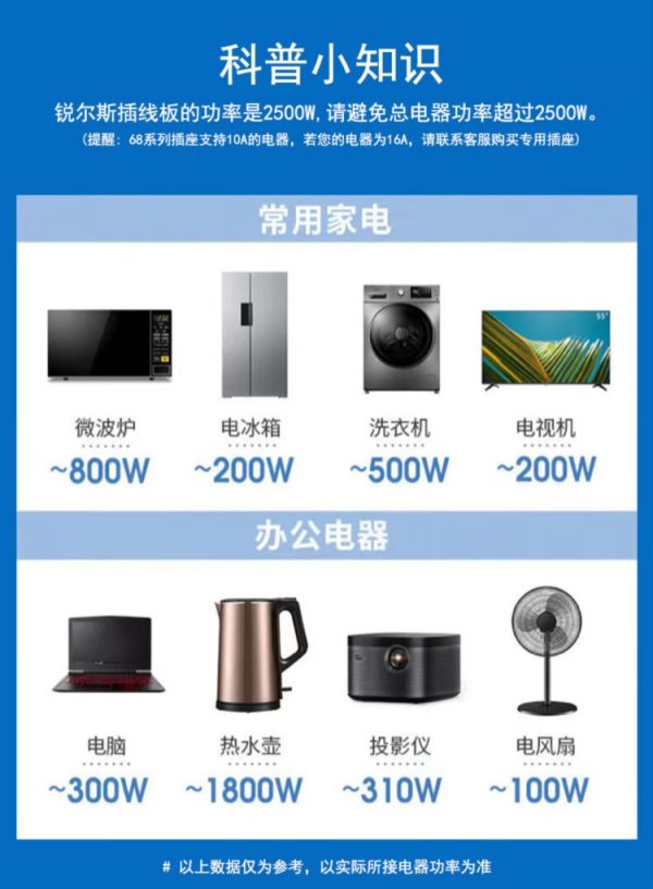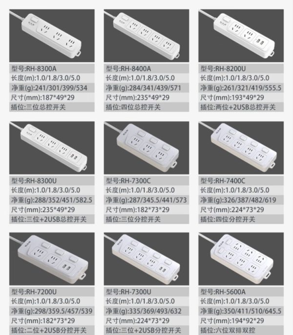 商品名称:锐尔斯 RH-6840B 四位总控开关,过载保护延长线插座全长1.8米 瓷白色(计价单位:个)