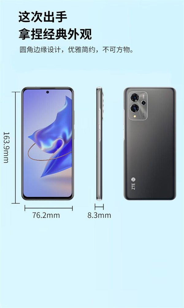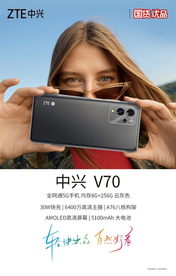 商品名称:ZTE中兴 V70 全网通5G手机 30W快充 内存8G+256G 6400万像素 云灰(单位:台)