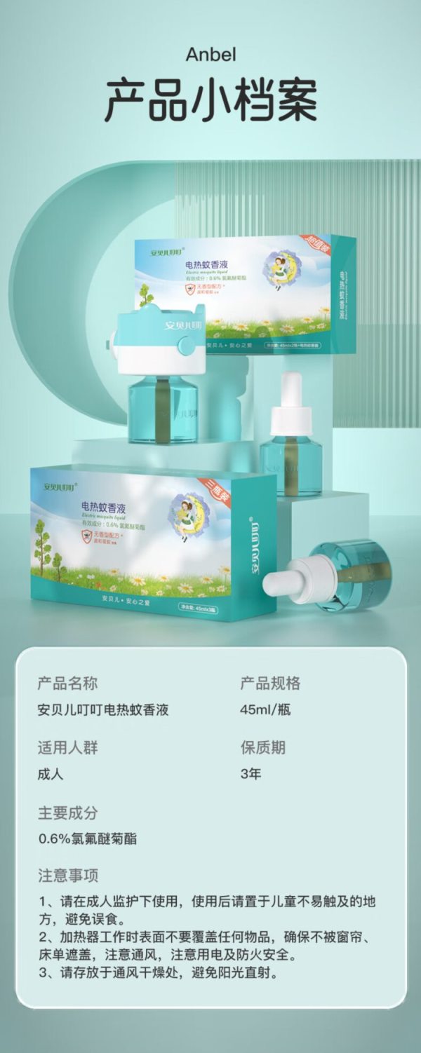 商品名称:安贝儿叮叮电热蚊香液 【蚊香液6瓶2器】 (单位:套)