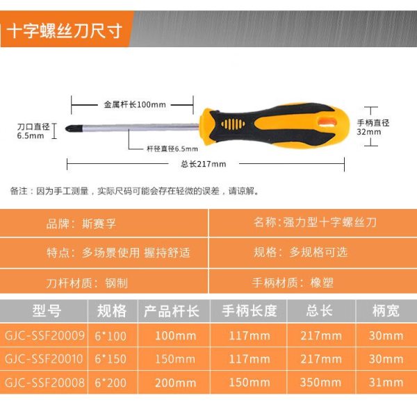 商品名称:斯赛孚 GJC-SSF20010 十字螺丝刀螺丝批起子 规格6*150 单位:把