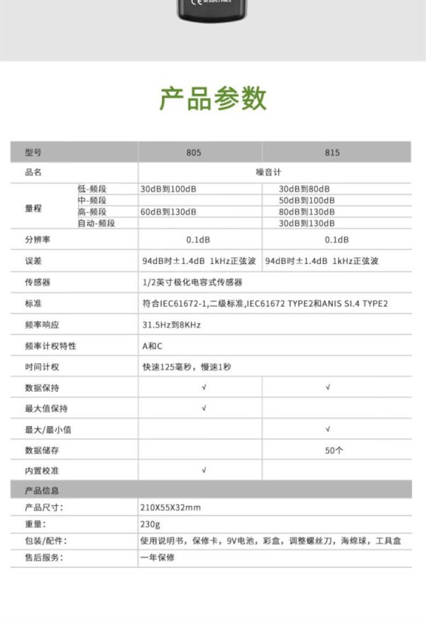 商品名称:华盛昌 NH805 30DB-130DB 噪音计 (计价单位: 台 )