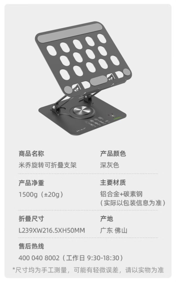 商品名称:米乔 多功能笔记本支架 MA-3010MQ 银色