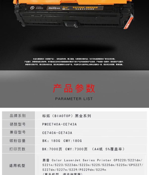 商品名称:标拓 PM-CE743A 打印量7300页 适用惠普Color LaserJet CP5220/5221/5223/5225/CP5227/5229 硒鼓 红色 (计价单位:支)