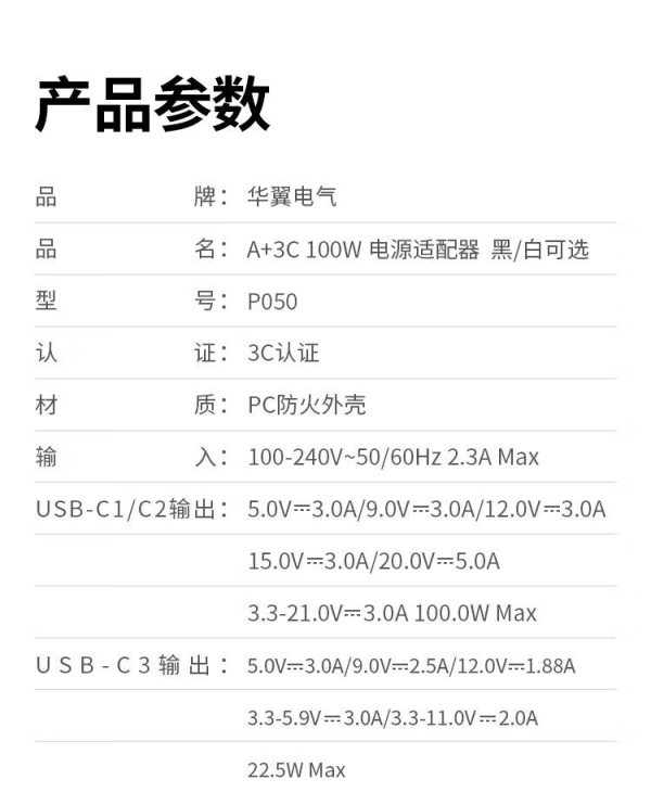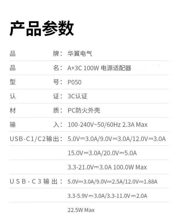 华翼电气 P050 A+3C 100W 电源适配器 (单位:个)