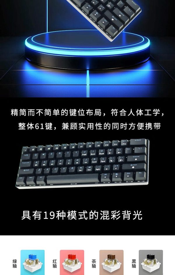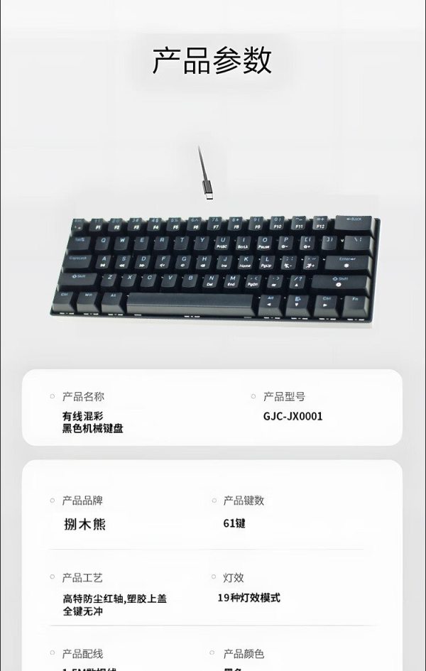 商品名称:捌木熊 GJC-JX0001 有线混彩61键 黑色机械键盘(计价单位:个)