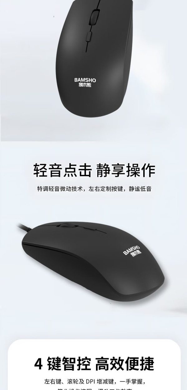 捌木熊 GJC-YXJS00001 办公鼠标 有线鼠标(单位:个)黑色