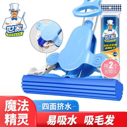 商品名称:世家 海绵拖把免手洗懒人吸水对折胶棉拖布地拖家用一拖净墩布 共2个头
