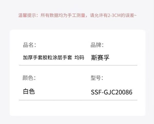 商品名称:斯赛孚 SSF-GJC20086 加厚手套胶粒涂层手套 均码(计价单位:双)