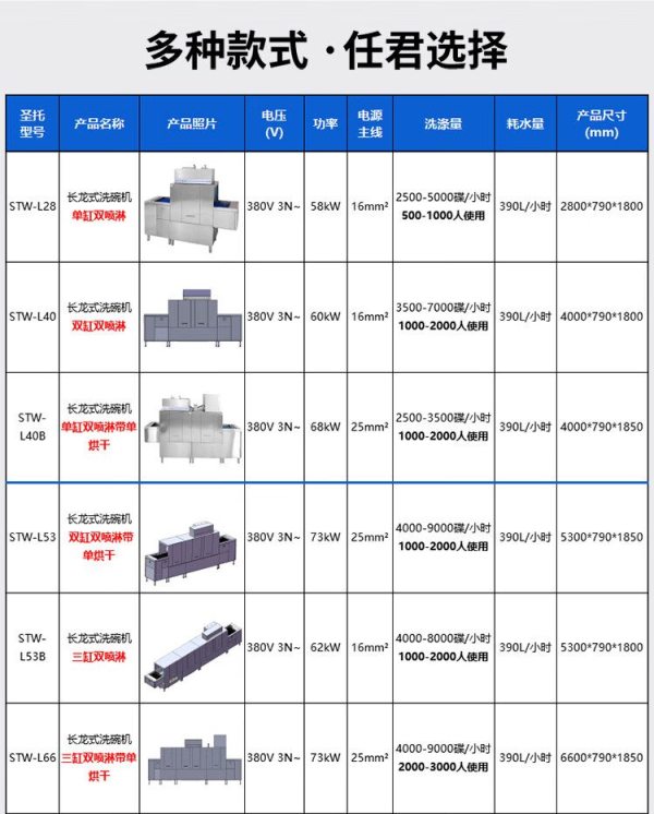 商品名称:圣托 STW-L85 四杠双喷淋带烘干隧道式 商用洗碗机 (计价单位:台)