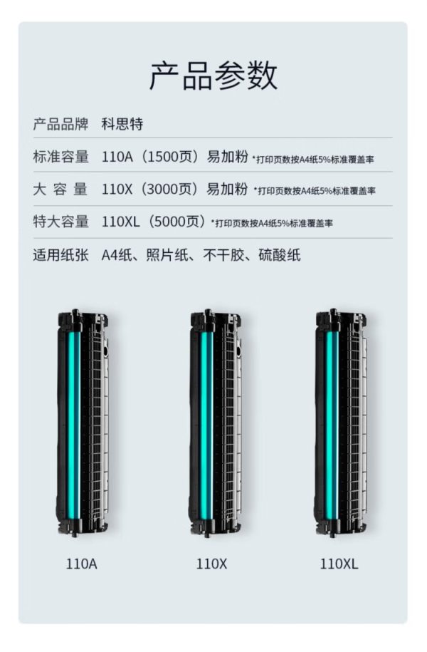 商品名称:科思特(KST) 110A专业版无芯片 1500页 适用HP惠普打印机 108a/W MFP 136w/a1110a 103A 硒鼓 黑色 (计价单位:个)