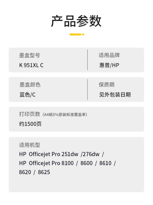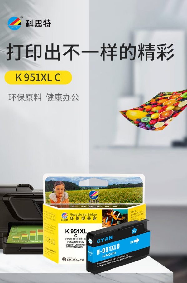 商品名称:科思特(KST) K 951XL C 1500页 适用HP Officejet Pro 8100 8600 Plus 墨盒 蓝色 (计价单位:个)