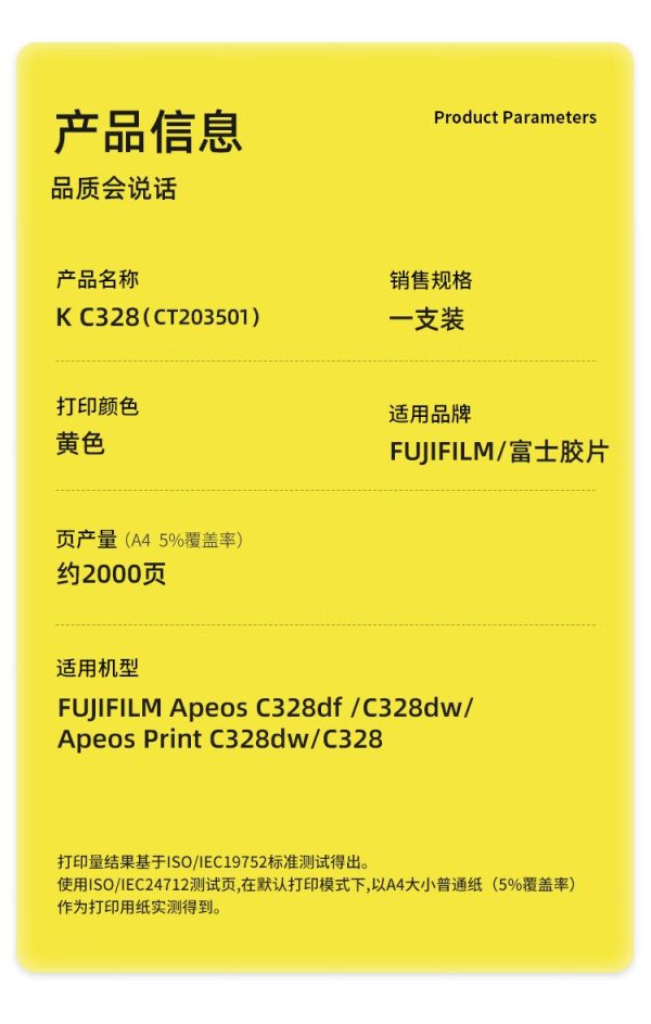 商品名称:科思特(KST) C328专业版 2000页 适用FUJIFILM Apeos Print C328dw/C328 粉盒 黄色 (计价单位:支)