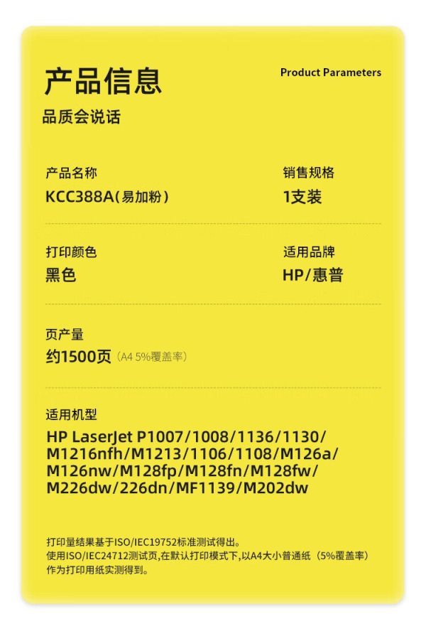 商品名称:科思特(KST) CC388A专业版 约1500页 适用HP LaserJet P1007 M1213 M1136 M126a 硒鼓 黑色 (计价单位:个)