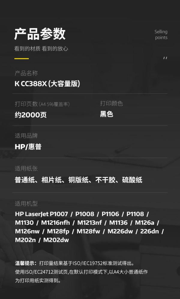 商品名称:科思特(KST) CC388X专业版 约2000页 适用惠普LaserJet Pro P1007/P1008/P1106 硒鼓 黑色 (计价单位:支)