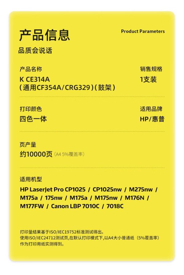 商品名称:科思特(KST) CE314A/CF354A专业版 打印量10000页 适用惠普 CP1025 M175a 佳能CRG329 四色通用 四色通用鼓架 (计价单位:个)