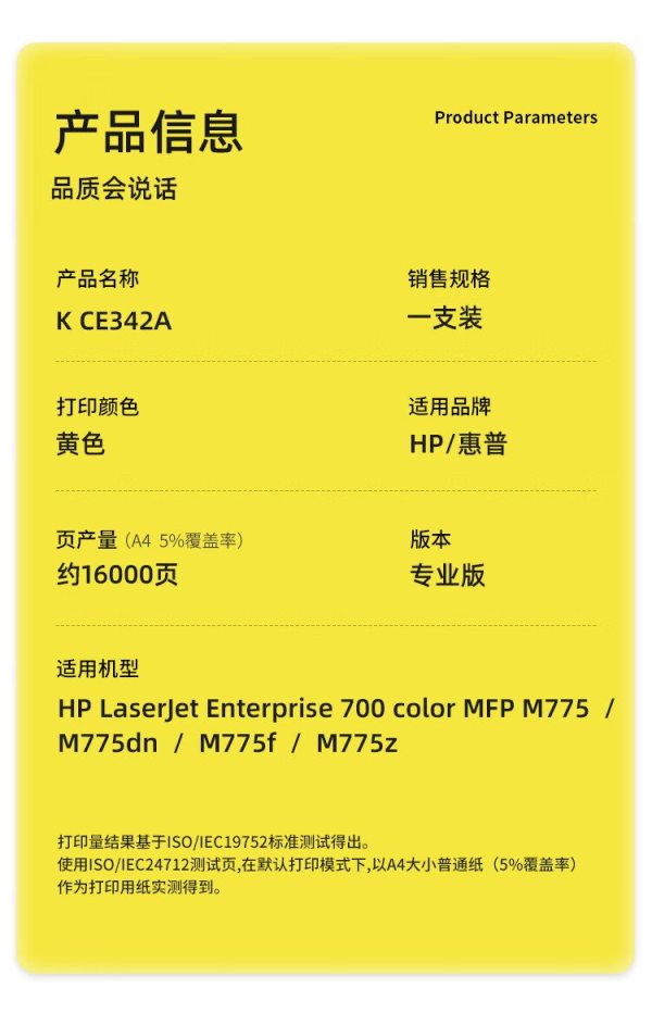 商品名称:科思特(KST) CE342A 专业版 16000页 适用惠普 M775 M775dn M775f M775z 307a 硒鼓 黄色 (计价单位:个)