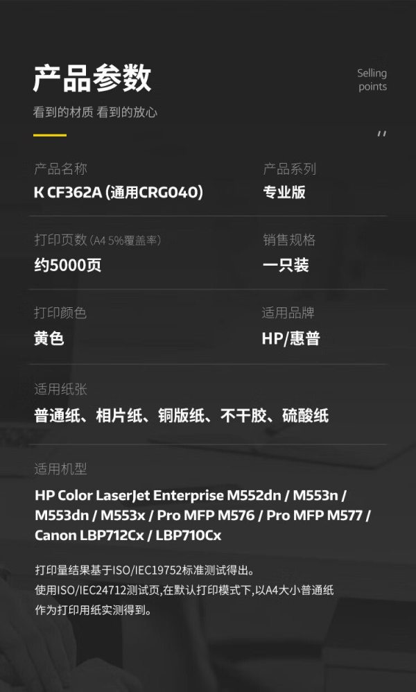 商品名称:科思特(KST) CF362A专业版 约5000页 适用惠普HP Color LaserJet EnterpriSe M552dn M553n M553dn M553x等 硒鼓 黄色 (计价单位:支)