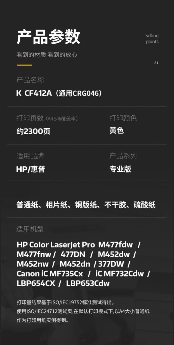 商品名称:科思特(KST) CF412A专业版 2300页 适用惠普M377dw M452nw/dn/dw M477fdw/fnw/dn 硒鼓 黄色 (计价单位:个)