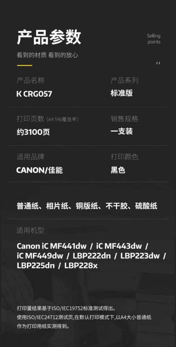 商品名称:科思特(KST) CRG057专业版不带芯片 3100页 适用佳能Canon ic MF441/443/449dw 硒鼓 黑色 (计价单位:个)