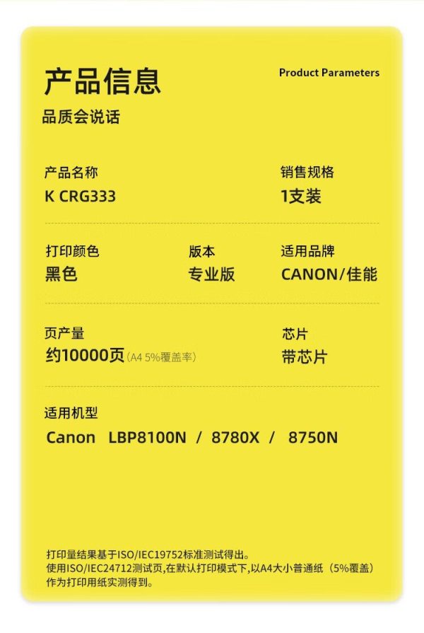 商品名称:科思特(KST) CRG-333专业版 10000页 适用于佳能LBP8780x LBP8750n 8100n 硒鼓 黑色 (计价单位:支)