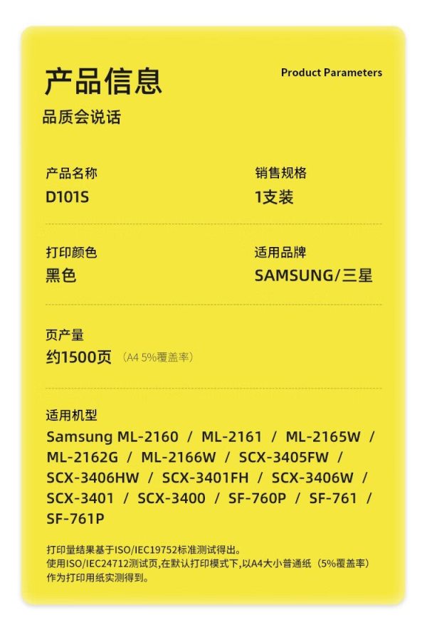 商品名称:科思特(KST) D101S专业版 1500页 适用Samsung ML-2160 SCX-3405FWSF-760P 硒鼓 黑色 (计价单位:个)