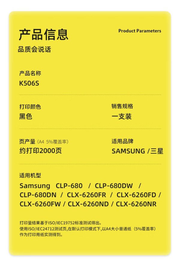 商品名称:科思特(KST) K K506S专业版 2000页 适用三星CLP-680ND CLX-6260ND 6260FR 硒鼓 黑色 (计价单位:个)