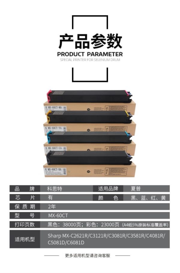 商品名称:科思特(KST) MX-60CTY专业版 23000页 适用MX-C2621R/C3121R/C3081R/C3581R/C4081R/C5081D/C6081D 粉盒 黄色 (计价单位:个)