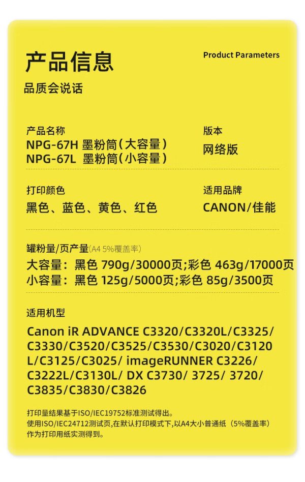 商品名称:科思特(KST) NPG-67L 小容量5000页 适用佳能C3320 C3325 C3330 C3520 C3525 C3530 粉盒 黑色 (计价单位:支)