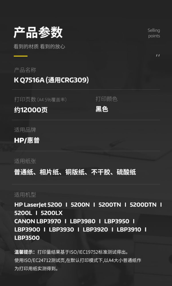 商品名称:科思特(KST) Q7516A专业版 12000页 适用惠普5200 N TN DTN L LX 佳能CRG309 3970 硒鼓 黑色 (计价单位:支)