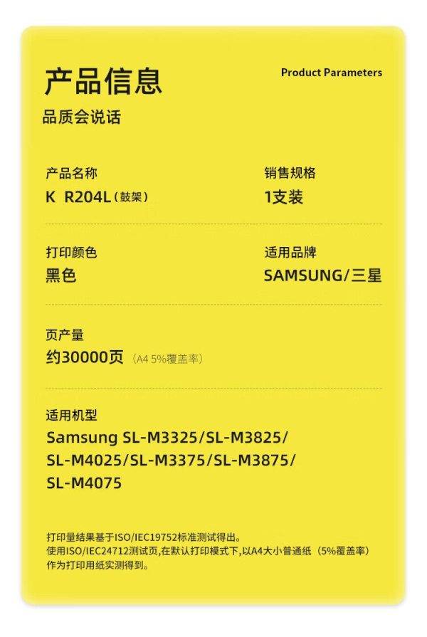 商品名称:科思特(KST) R204专业版 打印量30000页 适用三星SL-M3325 M3825 M4025 M3375 M3875 4075 鼓架 黑色 (计价单位:个)