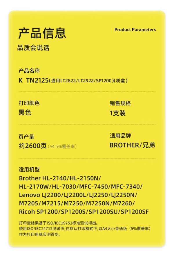 商品名称:科思特(KST) TN2125专业版 2600页 适用兄弟HL-2140联想LT2822/LT2922理光SP1200 粉盒 黑色 (计价单位:个)