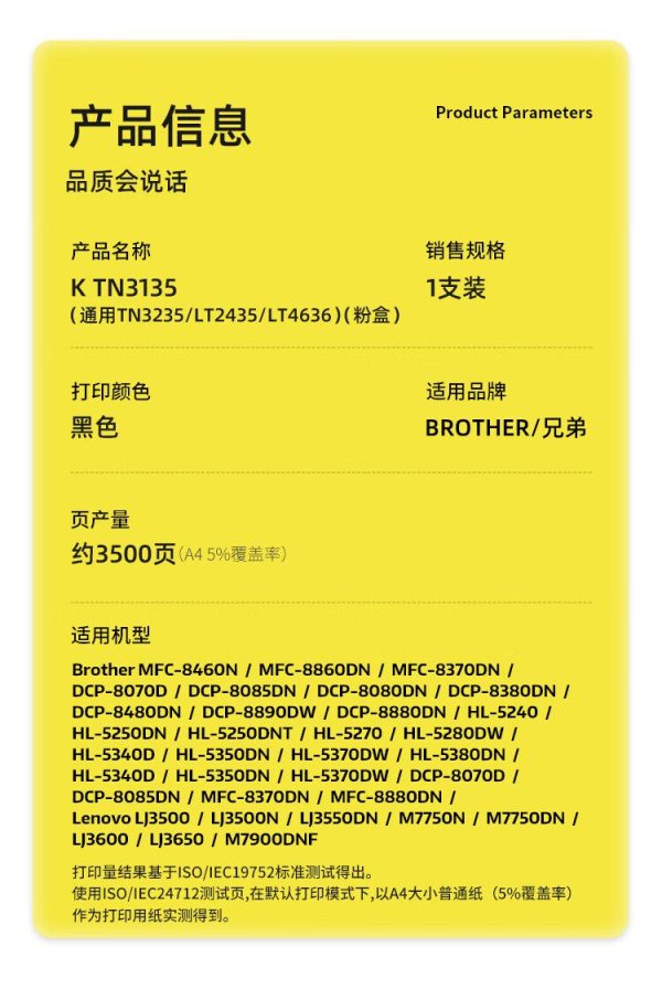 商品名称:科思特(KST) TN3135专业版 3500页 适用兄弟HL5240 5250DNT 5270 5284DW MFC8460 DCP8060 粉盒 黑色 (计价单位:个)